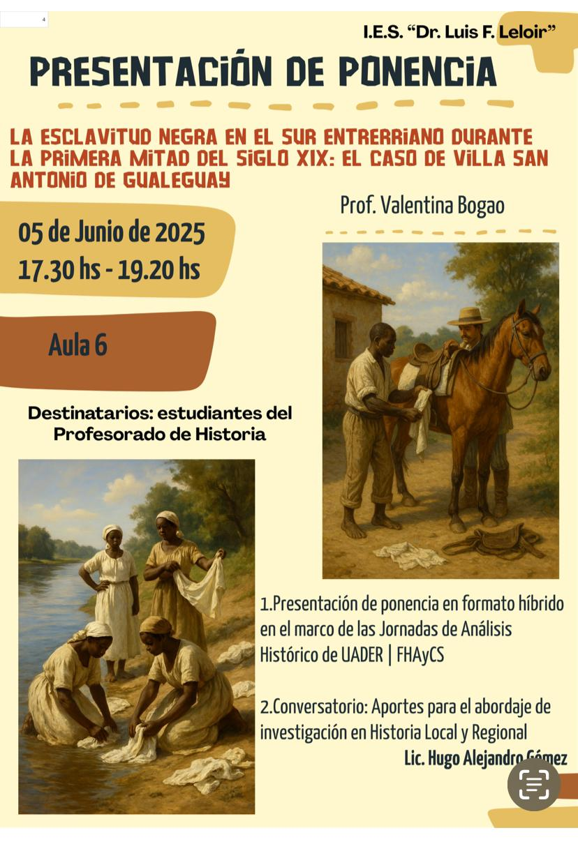 - Valentina Bogao “La esclavitud negra en el sur de Entre Ríos durante la primera mitad del siglo XIX. El caso de Villa San Antonio de Gualeguay”